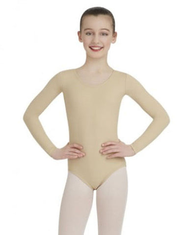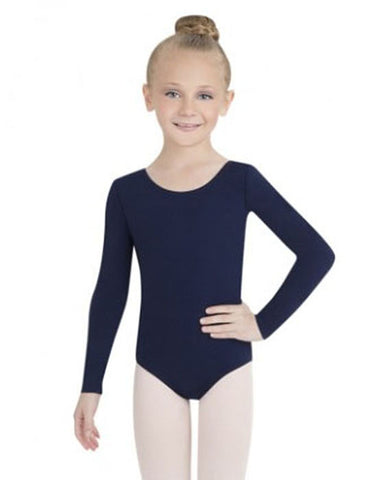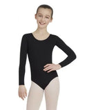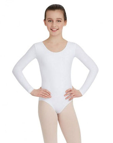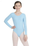 Capezio Team Basic long sleeve leotard features a scooped front and back with a traditional lower ballet leg line. A classic look for class, costume, liturgical, and just a basic for outerwear. Excellent value for a high quality, soft, double-stitched spandex infused garment. Available in a large range of sizes and colors.