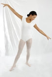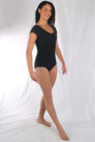 This classic short sleeve leotard makes an essential and practical piece in every dancer’s wardrobe. Featuring an elegant scoop neckline and a cotton blend material for quality and comfort. Feel great doing all your leaps and turns in this ultra classic short sleeve leotard.