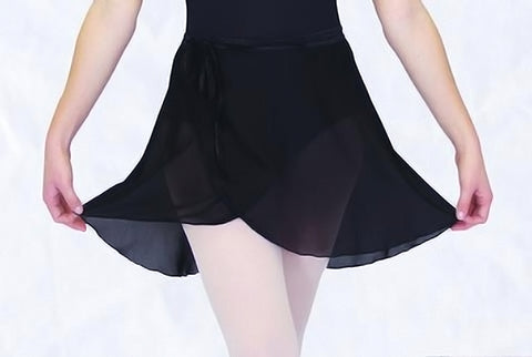 A ballet wrap skirt made with a layer of lightweight georgette fabric. This beautiful skirt lays over delicately, creating a flowy accent that matches the ease of your dance and grace.