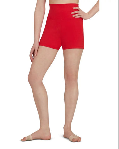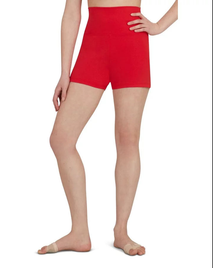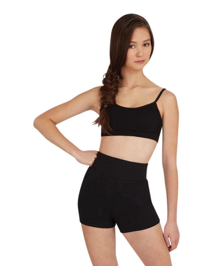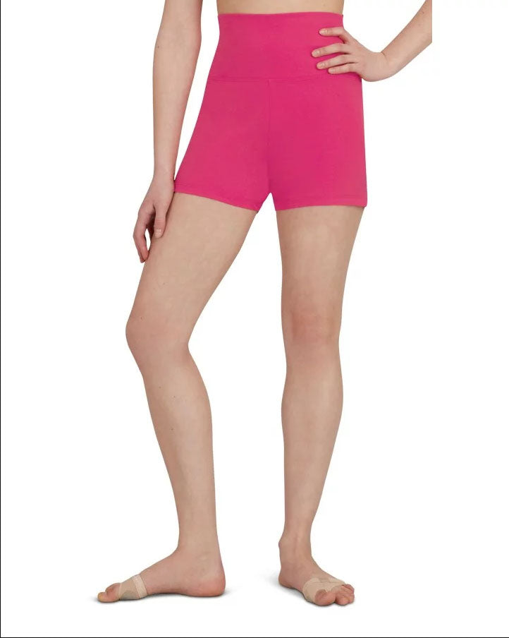 This slimming high waisted short is a new dance staple. Worn high or folded down, it compliments any dance ensemble.