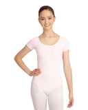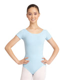 Soft and simple, this leotard is the perfect fit for long hours spent in classes or rehearsals. The cotton material moves with the body, providing ultimate comfort through all of your leaps and turns. Simple and practical, the Short Sleeve Leotard is an essential for every dancer’s wardrobe.